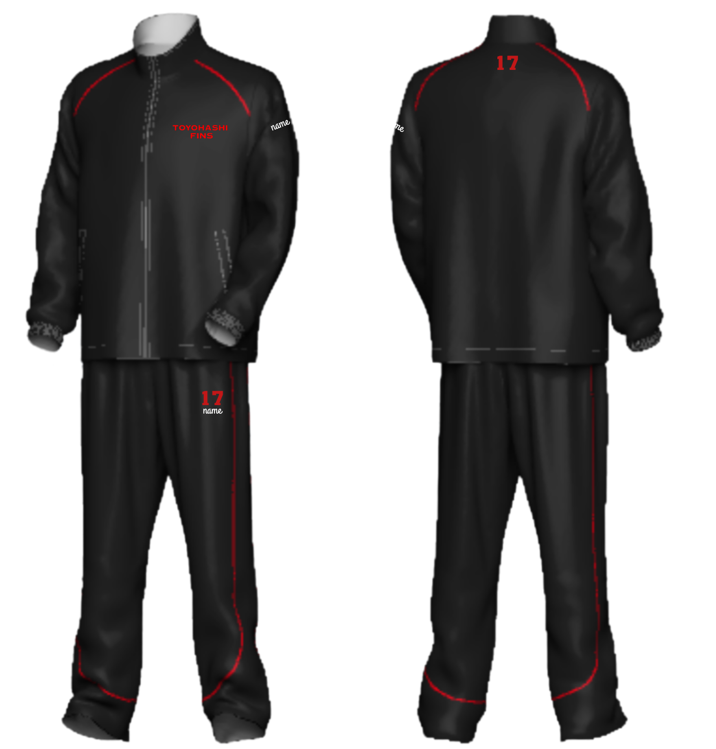ジャケットは胸元にチームロゴの印刷と袖にネームor番号が入ります。